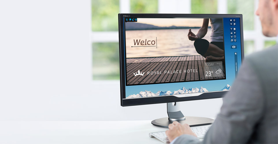 Platforma zarządzania obrazem CMND umożliwia kontrolę wszystkich wyświetlaczy Philips. Niezależnie od tego, czy jest to jeden wyświetlacz czy tysiące, możesz zarządzać pełnym zestawem wyświetlaczy z centralnej lokalizacji. Dzięki programowi CMND & Create można tworzyć materiały, przesyłać i aktualizować je z łątwością na wszystkie ekrany jednocześnie. Przy pomocy funkcji "przenieś i upuść" możesz też zarządzać paletą widżetów, aby utworzyć optymalny ich zestaw, wyświetlać treści w trybach krajobrazu lub portretu w doskonałej rozdzielczości HD i planować zmiany ich zawartości.